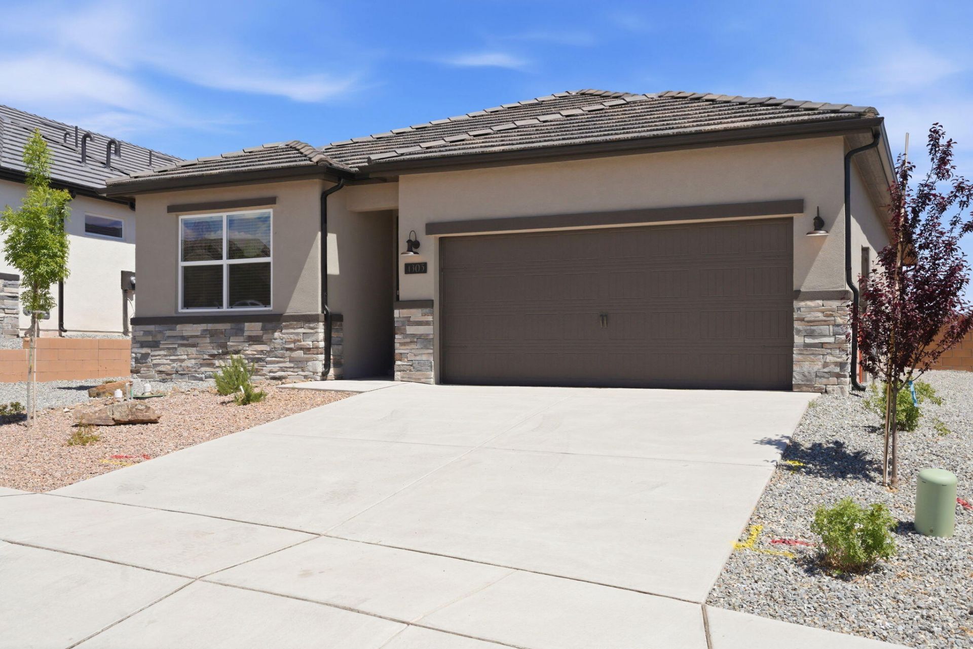 Discover this stunning new Amreston home, proudly NM Build Green Gold Certified for superior energy efficiency. This residence features the ''Cappuccino II'' color palette, offering cozy, warm tones throughout. The exterior is enhanced with elegant stone accents, while the kitchen serves as a focal point with stainless steel appliances and a beautiful herringbone tile backsplash. Granite countertops are featured throughout the home. Enjoy a great-sized backyard with incredible mountain views, perfect for outdoor living. Located in Rio Rancho near shopping, dining, and medical facilities with easy I-25 access. Great for families or as an investment! Call to schedule your tour and discuss buyer incentives. (793 characters)